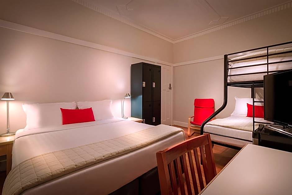 This private double room offers a private bathroom, tea and coffee making facilities, as well as reverse cycle air-conditioning. The bedding configuration is a queen size bed. The room features TV and working desk and a mini bar fridge.
